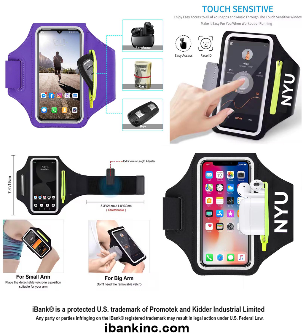 Full Touchscreen. Clear TPU screen protection film for easy access to your phone’s touchscreen functionality and 3-holes-design for charging & listening. It supports various phone unlock options such as password unlocking and gesture unlocking. High quality lightweight fabric and TPU, light weight, water-resistant, sweatpoof and washable. Reflective strips wrap around the screen window for enhanced nighttime visibility and safe nighttime running. It is suitable for most sports activities like jogging, running, cycling, mountain climbing, cross training, mountain biking, gym, etc.